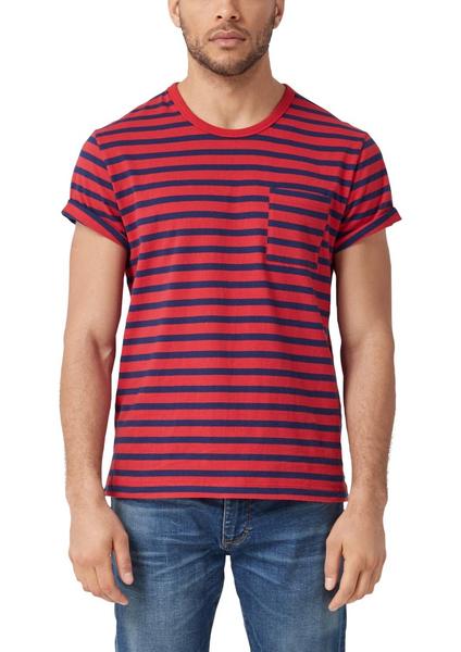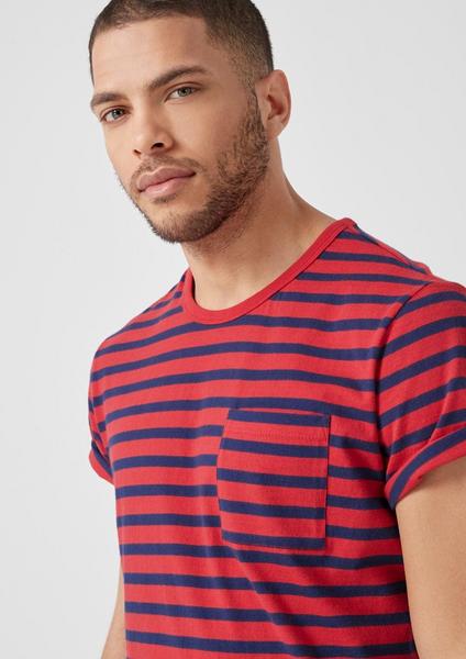 mit lässigen Blockstreifen, paspelierter Rundhalsausschnitt, eine aufgesetzte Brusttasche, reguläre Passform; Rückenlänge bei Größe L ca. 73 cm, klassischer Baumwolljersey