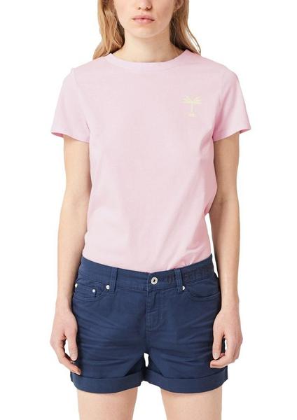 Rückseite mit großflächigem Palmen-Print , dezenter Print auf der Front , Rundhalsausschnitt mit Rippblende, regular Fit; Rückenlänge bei Größe S ca. 63 cm, weiche Jersey-Qualität aus reiner Baumwolle,