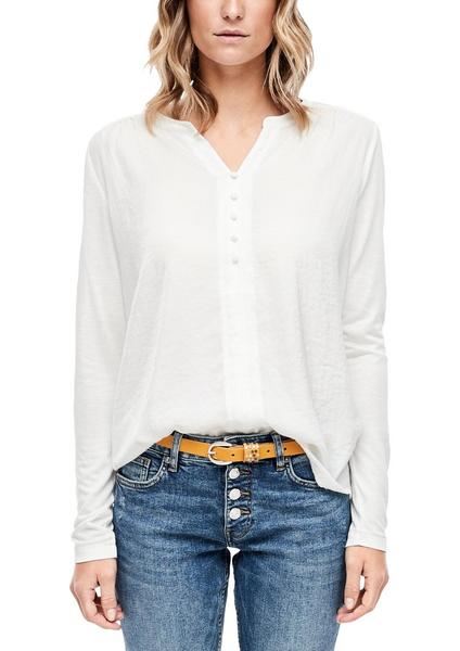 Fabric-Mix: Vorderteil aus schimmerndem Satin; Rücken und Ärmel aus Jersey, Tunikaausschnitt mit dekorativer Knopfleiste mit bezogenen Knöpfchen, Metallic-Paspelierung an den Schultern und Ärmelabschlüssen, Regular Fit; Rückenlänge bei Größe 36 ca. 67 cm, Vorderteil aus fließender Webware; Ärmel und Rücken aus feiner, hochelastischer Jersey-Ware
