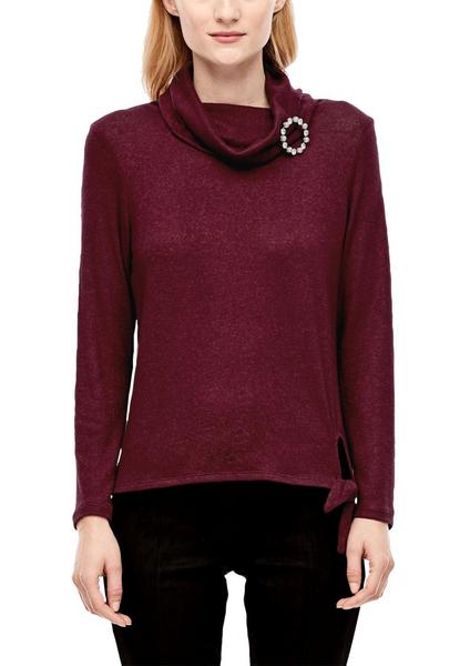 Langarmshirt in Melange-Struktur, mit Turtleneck, mit kleinem Schleifen-Detail am Saumabschluss, Regular Fit; Rückenlänge bei Größe 36 ca. 60 cm, weicher Strickjersey aus Viskosemix