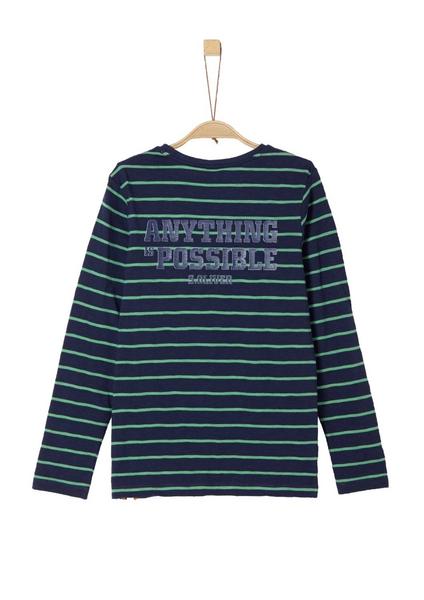 gummierter Wording-Print auf dem Rücken, Streifen-Look mit Flammgarn-Struktur, Rundhalsausschnitt mit Rippblende, eine aufgesetzte Brusttasche, Saumabschluss mit seitlichen Schlitzen, reguläre Passform; Rückenlänge bei Größe M ca. 60 cm, Flammgarn-Qualität aus reiner Baumwolle
