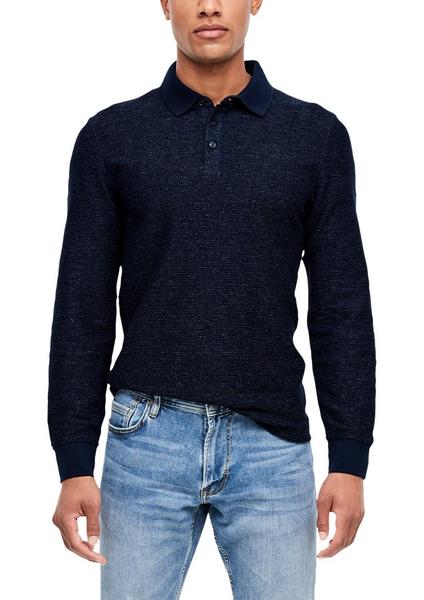 Rippstruktur mit Melange-Effekt, farblich abgesetzter Polokragen mit kurzer Knopfleiste, Rippbündchen an den Ärmeln, Slim Fit; Rückenlänge bei Größe M ca. 69 cm, griffige Ripp-Qualität aus Baumwollmix