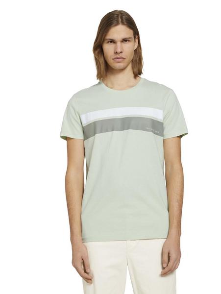 T-shirt w. striped chestprint - 25132/smooth green
