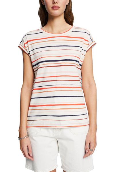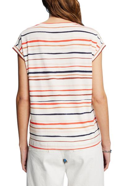 * Jersey aus reiner Baumwolle * Runder Ausschnitt * Überschnittene Schulter dient als Ärmel * Mehrfabriges Streifen-Dessin * Gerade Passform