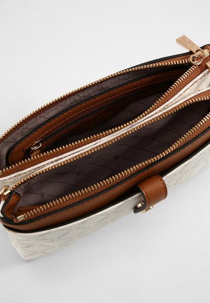 Mit ihrem Allover-Logoprint und den kontrastierenden, einfarbigen Kunstleder-Partien wirkt die Umhängetasche FILIBERTA sehr elegant. Dank der beiden nebeneinander liegenden Hauptfächer mit Reißverschluss ist sie zudem perfekt organisiert Dies setzt sich innen mit einer übersichtlichen Organzier-Einteilung fort. Der Schultergurt ist verstellbar, lässt sich individuell anpassen und bei Bedarf abnehmen. Abgerundet wird FILIBERTAS Look durch ein glänzendes Emblem und einen Logo-Anhänger.