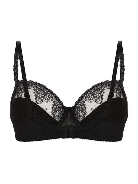 * Dezent glänzende Stickerei auf transparentem, elastischem Tüll