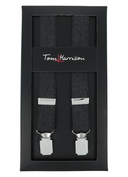 Produktdetails: Das aktuell beliebteste Modeaccessoire für den selbstbewussten Mann: Hosenträger. Ob lässig zum Hemd oder klassisch unter dem Sakko getragen, diese Träger sind ein echter Hingucker. Erhältlich sind sie in den beliebten Melange Farben Anthrazit und Blau. Dank der elastischen, längenverstellbaren Träger wird ein perfekter Sitz garantiert. Das Rückteil in X-Form ist mit einem Metallclip veredelt. Alle Hosenträger werden in einer hochwertigen Box geliefert. Materialbeschreibung: Die Tom Harrison Hosenträger bestehen aus 70% Polyester und 30% Elasthan. Die elastischen Bänder sorgen für einen perfekten Tragekomfort. Hochwertige Schiebeklemmen ermöglichen ein individuelles Regulieren auf jede Körpergröße. Die Metallschließen im edlen Look sind selbstverständlich nickelfrei. * Hosenträger 70% Polyester/ 30% Elasthan * X-Form * hochwertige Metallschließe und Schiebeklemmen * nickelfrei