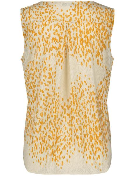 Semitransparente Ausbrenner-Effekte. Dekorative Drapierung am Ausschnitt. Das Top mit ausgefallenem Print und Ausbrenner-Effekt lässt Urlaubs-Feeling aufkommen. Fehlt nur noch die kurze Hose und Sneaker, auf geht's!
