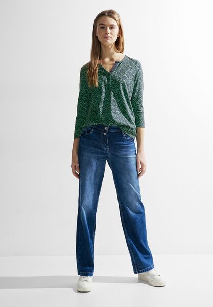 Das Damenshirt von CECIL mit 3/4 Arm und geschlitztem Rundhalsausschnitt verleiht deinem Look eine stilvolle Note. Das Minimalmuster und das Paspelband verleiht dem Tunikashirt eine besondere Optik. Dank des angenehmen Baumwoll-Modal Mixes ist es ein komfortabler Begleiter für den Alltag. Damenshirt Tunikastyle Minimalmuster Geschlitzter Rundhalsausschnitt Zweifarbig Maße bei EU-Größe M ca.: Länge 67 cm, Brust 110 cm, Saumweite 112 cm Material: 50% Baumwolle, 50% Modal