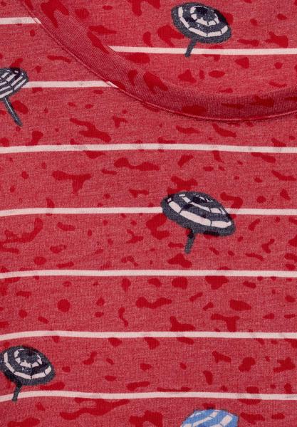 Cool down! In angesagter Ausbrenner Optik begeistert das Damen T-Shirt von CECIL. Zusätzlich sorgt der Print in Form von Streifen und Sonnenschirmen für gute Laune. Mit Rundhalsausschnitt und Knoten Detail am Saum wird es zum treuen Begleiter im Frühling.