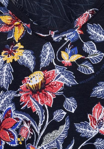Flower Power! Wir blühen auf in diesem Damentop von CECIL. Der allover Flower Print macht das luftige Material zum Blickfang. Ärmellos, mit V-Ausschnitt zeigt sich das Top lässig-feminin. Ein zusätzlicher Eyecatcher ist das Flammgarn und die Burnout Optik. Der Gummizug im Saum rundet den Look gekonnt ab.