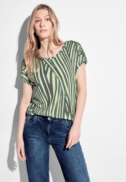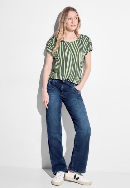 Das gestreifte Kurzarmshirt von CECIL für Damen begeistert mit einem gerundeten V-Ausschnitt und einem komfortablen Gummibund. Eine dezente Biesen-Dekoration an der Schulter verleiht dem Shirt eine raffinierte Note. Gefertigt aus angenehmer Jersey-Qualität garantiert es ein angenehmes Tragegefühl den ganzen Tag über. Kurzarmshirt Gerundeter V-Ausschnitt Gummibund Biesen Dekoration an der Schulter Angenehme Jersey-Qualität Maße bei EU Größe M ca.: Länge 67 cm, Brust 110 cm, Saumweite 96 cm Material: 50% Baumwolle, 50% Modal