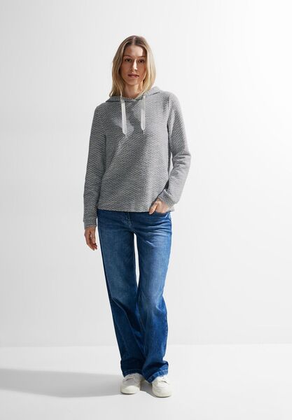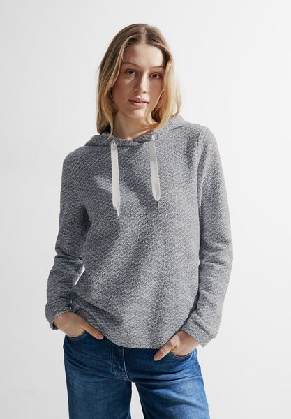 Das Damenshirt von CECIL ist ein Langarm-Hoodie mit Kapuze und Tunnelzug. Die grobe Struktur aus Bouclé Jersey Qualität verleiht ihm ein angenehmes Tragegefühl. Dieses Damenshirt kann auch als leichtes Sweatshirt verwendet werden und ist vielseitig kombinierbar. Mit seiner bequemen Passform und dem modernen Design ist es eine ideale Ergänzung für deine Garderobe.