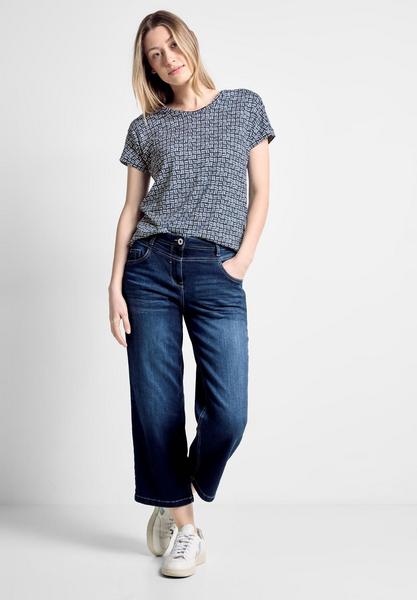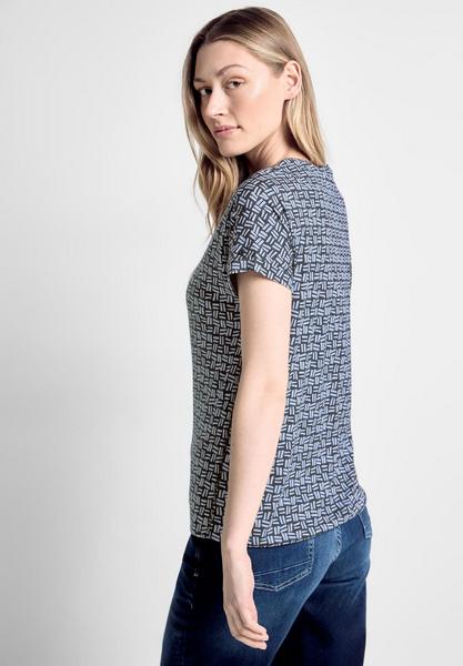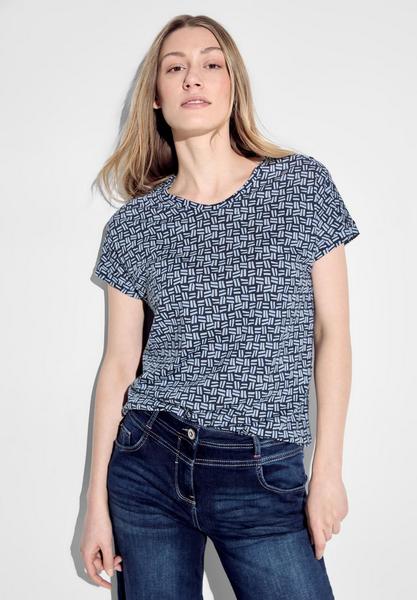 Das Kurzarmshirt für Damen von CECIL präsentiert sich mit einem trendigen Minimalprint und einem abgerundeten V-Ausschnitt für einen modernen Look. Ein charmantes Knopfdetail an der Schulter verleiht dem Shirt eine verspielte Note. Dank des Gummibunds und der angenehmen Jersey-Qualität bietet es einen optimalen Tragekomfort für jeden Tag. Kurzarmshirt Abgerundeter V-Ausschnitt Schulter mit Knopfdetail Gummibund Angenehme Jersey-Qualität Material: 50% Modal, 50% Baumwolle