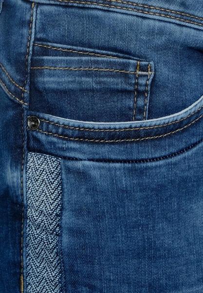 I got a good Feeling! Denn die Slim Fit Denin Charlize sitzt super bequem und wird durch einen Galonstreifen mit Zick Zack Muster toll hervorgehoben. Die Slim Legs werden so perfekt in Szene gesetzt. Die mittelblaue Waschung lässt sich ideal stylen und das Design wird durch den 5-Pocket Style perfekt abgerundet.\n\n\n Slim Fit Denim\n Middle Waist und Slim Legs\n Galon mit Zick Zack Muster\n 5-Pocket Style\n Reißverschluss und Knopf\n Mittelblaue Waschung\n Maße bei Inch-Größe 26/32 ca.:\n Innenbeinlänge 82 cm, Fußweite 15 cm\n Material: 82% Baumwolle, 16% Polyester, 2% Elasthan