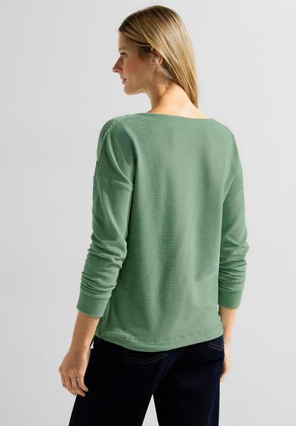 Ein Hauch von Eleganz! Das Damen Langarmshirt von CECIL mit seinem Tunnelzug im Bund und den dekorativen Knöpfen auf der Schulter sowie dem U-Boot Ausschnitt ist ein echtes Fashion-Statement. Die Kombination aus trendigen Details und einem modernen Schnitt verleiht diesem unifarbenen Cord Shirt eine individuelle Note. Trage es zu Jeans oder einer schicken Hose und verleihe deinem Look eine stilvolle und trendige Ausstrahlung.