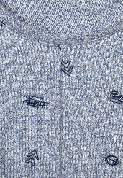 Peace! Das langärmelige Shirt von CECIL ist aus superweichem Material und hat eine coole Melange-Optik. Das Minimal Muster mit Symbolen und Schriftzügen setzt sich toll ab und ein asymmetrisch platziertes Tunnelzugband mit Knotendetail am Saum betont die lässige Ausstrahlung.\n\n\n Shirt in Melange-Optik\n Minimal Muster\n Rundhalsausschnitt\n Tunnelzugband am Saum\n Supersoftes Material\n Maße bei EU-Größe M ca.:\n Länge 63 cm, Brust 54 cm, Saumweite 56 cm\n Material: 75% Viskose, 22% Polyester, 3% Elasthan