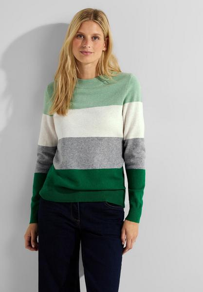 Modischer Akzent! Der Damen Strickpullover von CECIL mit leichtem Stehkragen und mehrfarbigen Blockstreifen ist ein echter Blickfang. Durch den soften Materialmix und die vielseitig kombinierbaren Farben wird dieser Damenpullover zu einem echten Lieblingsstück.