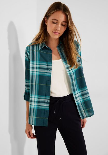 Klassisch und vielseitig! Die Damen Hemdbluse von Street One mit Langarm, Kragen und Knopfleiste ist ein zeitloser Favorit. Das mehrfarbige Karo-Muster verleiht ihr einen besonderen Charme. Kombiniere sie mit Jeans oder Hosen für einen stilvollen Look.
