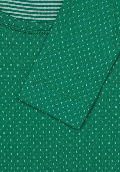 Happy dots: Das Langarmshirt von CECIL ist mit einem kleinen Punktemuster bedeckt. Mit lässig hochgekrempelten Ärmeln kommt auch die coole Doubleface-Optik perfekt zur Geltung, denn der Innenteil ist mit einem Streifenmuster bedeckt und steht im tollen Kontrast zum Punkt. Der elastische Materialmix liegt weich auf der Haut und das Tunnelzugband am Saum lässt sich zu einem sportiven Knotendetail schnüren. Ein rundum stimmiges Design im gemütlichen Style!\n\n\n Shirt in Doubleface-Optik\n Punkte und Streifen\n Rundhalsausschnitt\n Tunnelzugband mit Knotendetail am Saum\n Elastischer Materialmix\n Maße bei EU-Größe M ca.:\n Länge 67 cm, Brust 54 cm, Saumweite 56 cm\n Material: 76% Baumwolle, 24% Polyester