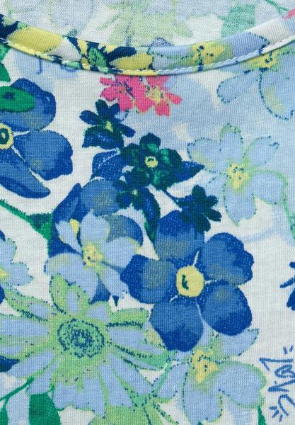 Frühlingsstimmung! Das Damen T-Shirt von CECIL zeigt sich im femininen Blumenmuster und überzeugt mit raffinierten Details. Das Tunnelzugband im Saum etwa kann lässig geknotet werden und bringt das Shirt in Form. Überschnittene Schultern sorgen zusammen mit dem U-Boot Ausschnitt für einen sportlichen Look und betonen dezent die Schulterlinie. T-Shirt U-Boot Ausschnitt Saum mit Tunnelzugband Maße bei EU-Größe M ca.: Länge 67 cm, Brust 109 cm, Saumweite 112 cm Material: 50% Modal, 50% Baumwolle