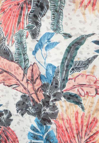 Print Power! Cosy T-Shirt von CECIL, das mit seinem intensiven Muster, Lust auf Sommer macht. Hingucker ist die coole Burnout Optik, die den Blätter Print noch stärker zur Geltung bringt. Die überschnittenen Schultern und der Gummizug im Saum setzen einen lässigen Akzent. Der V-Ausschnitt ergänzt den Look. T-Shirt Burnout Optik Blätter Print Maße bei EU-Größe M ca.: Länge 67 cm, Brust 109 cm, Saumweite 112 cm Material: 50% Baumwolle, 50% Polyester