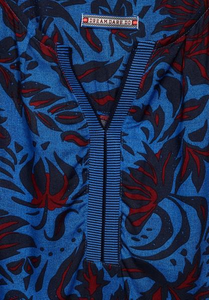 Flowerful! Das feminine Blusentop von CECIL macht mit dem grafischen Blumen Print Lust auf Sommer und Sonnenschein. Ein Rundhalsausschnitt mit Schlitz und kontrastigem Streifen-Muster sorgt für Hingucker am Dekolleté.