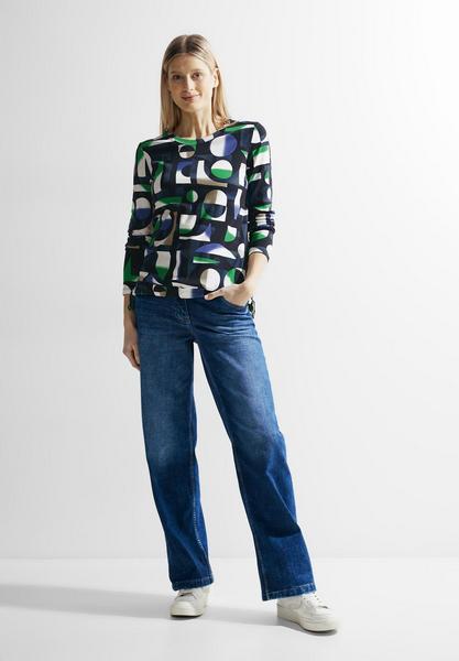 Das Langarmshirt von CECIL ist ein It-Piece mit Langarm, Rundhalsausschnitt und Tunnelzug im Bund. Das geometrische Muster verleiht diesem Damenshirt eine moderne Note, während der Baumwollstoff für Bequemlichkeit sorgt. Es ist ein perfekter Begleiter für verschiedene Outfits und kann das ganze Jahr über getragen werden.