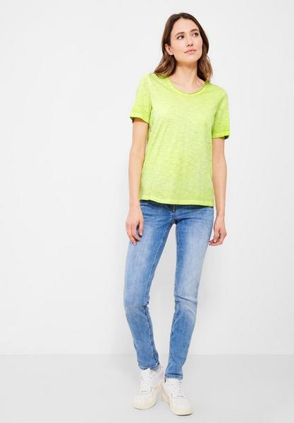 I`m so happy! Lässiges Damen T-Shirt im Basic Look von CECIL. Ein treuer Begleiter in Unifarbe, der in Flammgarn überrascht. Zum Trendteil wird es durch seinen abgerundeten V-Ausschnitt. T-ShirtUnifarbeAbgerundeter V-Ausschnitt Maße bei EU-Größe M ca.:
