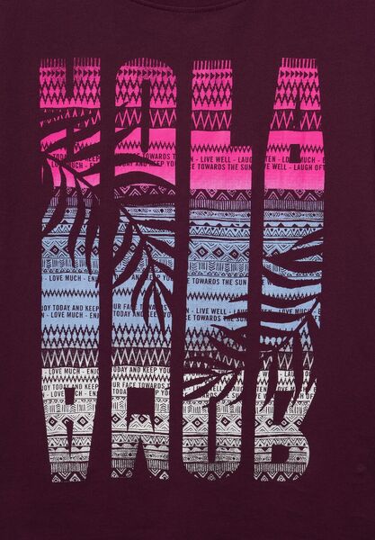 Hola Amor! Cooles Damen T-Shirt von CECIL mit Rundhalsausschnitt und in frischer Unifarbe. Diese bekommt durch ein Wording mit sommerlichem Print einen tollen Hingucker. Der Halbarm überrascht mit einem Umschlag aus feiner Ripp Struktur. Auf der Rückseite befindet sich eine Kicknaht. Ein neues Lieblingsshirt, das sich toll zum Kombinieren eignet und Lust auf Urlaub macht! T-Shirt Rundhalsausschnitt Print Maße bei EU-Größe M ca.: Länge 68 cm, Brust 110 cm, Saumweite 108 cm Material: 100% Baumwolle