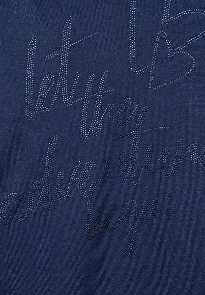 Let the Adventure begin: Das Hoodie Shirt von CECIL wird durch einen Schriftzug aus Strasssteinen auf der Vorderseite verziert. Die Kapuze mit Tunnelzugband verleiht eine lässige und sportive Note. Zusammen mit dem Elastikbund und dem soften Materialmix mit Stretchanteil entsteht ein Wohlfühlteil, welches sich perfekt für tolle Alltagslooks eignet.\n\n\n Hoodie Shirt\n Schriftzug aus Strasssteinen\n Kapuze mit Tunnelzugband\n Elastiksaum\n Maße bei EU-Größe M ca.:\n Länge 67cm, Brust 52cm, Saumweite 56cm\n Material: 67% Viskose, 29% Polyester, 4% Elasthan