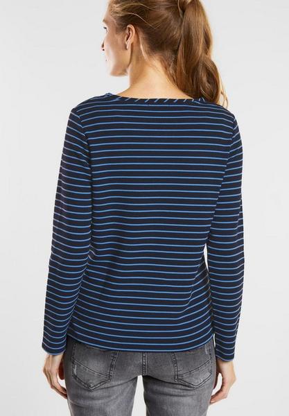 Streifen, Streifen, Streifen! Das lässige Shirt punktet mit modischem Streifendesign im angesagten Patchwork Style. Der lockere Schnitt bietet angenehme Bewegungsfreiheit und der weiche Viskose-Mix bringt Bequemlichkeit in den Alltag. Mit lässiger Denim oder schmaler Hose: dieses Shirt lässt sich unendlich vielseitig kombinieren.\n\n\n Struktur-Streifenshirt Karina\n Mit Einschlitzen am Saum\n Rundhalsausschnitt\n Maße bei EU-Größe XS ca.:\n Länge 57cm, Breite 48cm, Taille 46cm\n Material: 63% Viskose, 36% Polyester, 1% Elasthan\n\n