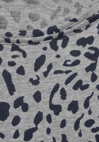Wild Style! Das T-Shirt von CECIL ist ganz dem Thema Animal Print gewidmet und wird durch das Leomuster zum absoluten Hingucker. Der gerippte Elastiksaum ist im College-Style verziert und garantiert einen lockeren und entspannten Sitz. Das softe Viskosematerial hinterlässt ein Wohlgefühl auf der Haut.\n\n\n T-Shirt mit Leomuster\n Rundhalsausschnitt\n Elastiksaum im College-Style\n Softes Viskosematerial\n Melange-Optik\n Maße bei EU-Größe M ca.:\n Länge 65 cm, Brust 53 cm, Saumweite 53 cm\n Material: 100% Viskose