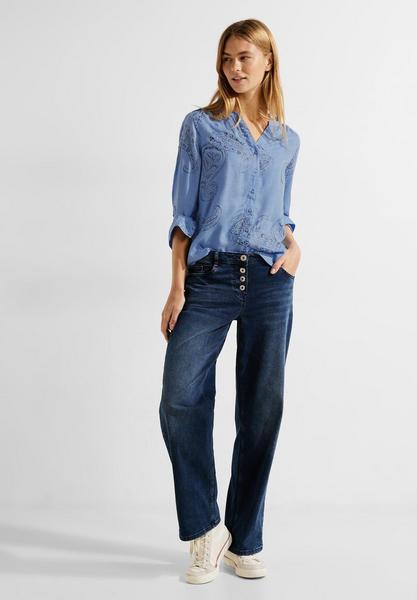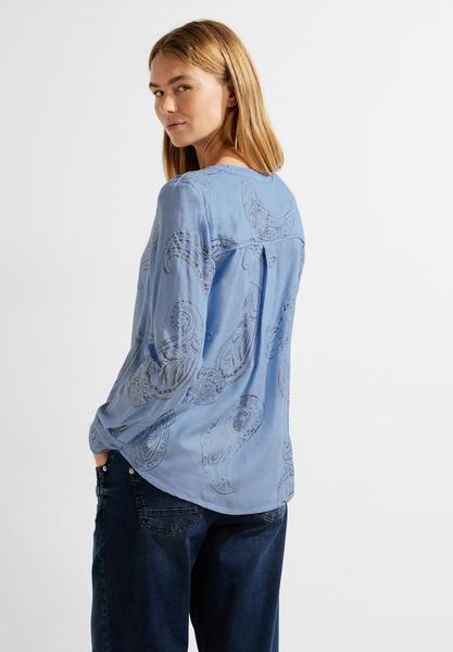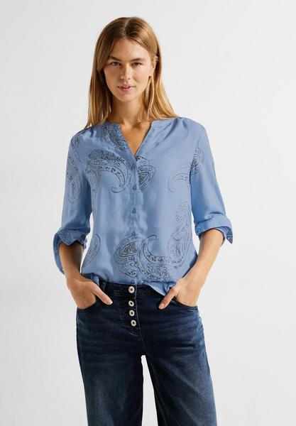 Fashionstar! Die Damenbluse von CECIL mit Turn-Up Langarm, geschlitztem Rundhalsausschnitt und Knopfleiste ist ein wahrer Hingucker. Sie überzeugt in Viskose mit einem leicht schimmernden Folienprint mit Paisley Muster.
