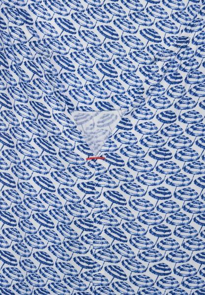Sunset Prints! Feminine Damenbluse von CECIL mit geschlitztem Rundhalsausschnitt. Hingucker ist der sommerliche Schirmchen Minimal Print, der sich auf der soften Viskose besonders zart zeigt. Die 3/4 Ärmel und das lässige Tunnelzugband im Saum setzen einen zusätzlichen legeren Akzent.
