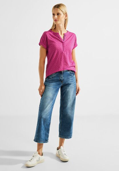 Embrace Summer Vibes! Das sommerliche Damenshirt von CECIL mit geschlitztem Rundhalsausschnitt, Kurzarm und einem Allover-Ausbrennermuster in Rhombusform ist ein modischer Allrounder für jeden Tag. Es verleiht deinem Look das gewisse Etwas. T-Shirt Geschlitzter Rundhalsausschnitt Ausbrenneroptik Maße bei EU-Größe M ca.: Länge 68 cm, Brust 110 cm, Saumweite 108 cm Material: 50% Polyester, 50% Baumwolle