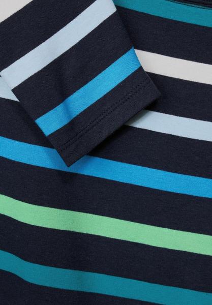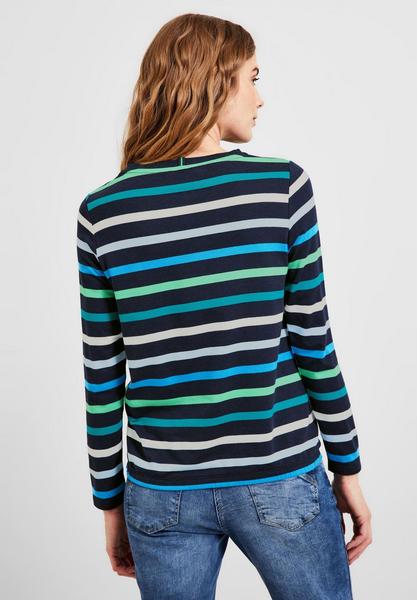Stripes Power! Sportlich-lässiges Damenshirt von CECIL mit U-Boot Ausschnitt. Das Streifenmuster zeigt sich in einem modernen Multicolor. Ein bequemes Langarmshirt mit Elastiksaum für Freizeit und Büro.
