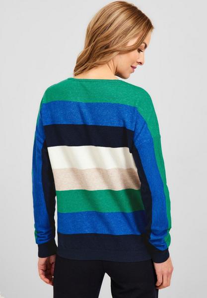 Im Farbmixer! Schöner Damenpullover von CECIL, der jedem Look das gewisse Etwas gibt. Mit U-Boot Ausschnitt setzt er das Dekolleté gut in Szene. Eyecatcher ist das Multicolor Streifenmuster!