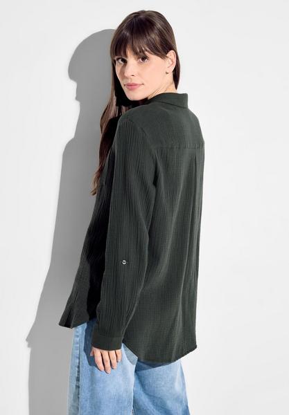 Die Musselin Hemdbluse von CECIL ist eine Bluse für Damen aus Baumwolle mit einem klassischen Kragen, einer Knopfleiste und einer praktischen Brusttasche. Die Turn-Up Langarm-Funktion ermöglicht es, die Ärmel nach Belieben hochzukrempeln. Das weich fließende und atmungsaktive Material sorgt für hohen Tragekomfort und macht diese Bluse zu einem vielseitigen Begleiter für verschiedene Anlässe. Bluse aus Baumwolle Kragen, Knopfleiste und Brusttasche Turn-Up Langarm Weich fließend und Atmungsaktiv Material: 100% Baumwoll