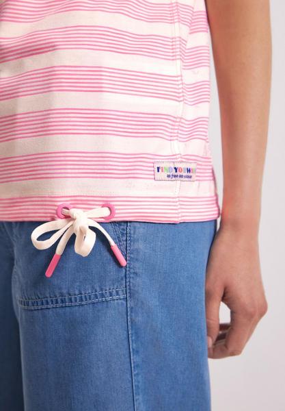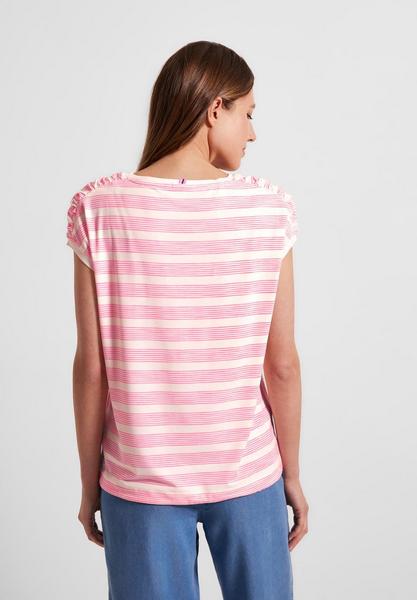 Find your way! Cooles Damen T-Shirt von CECIL mit Tunnelzugband im Saum. Die überschnittenen Schultern zeigen sich mit trendstarken Raffungen. Hingucker ist das Streifenmuster in dezenter Melangeoptik. Das Material trägt sich angenehm und macht das Shirt zu einem treuen Begleiter durch den Sommer!