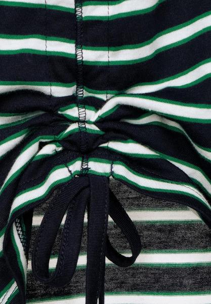 Streifen querbeet: Das Shirt von CECIL hat lässige 3/4 Ärmel und einen tollen Patchwork-Streifenmix! Der elastische Materialmix erhöht den Tragekomfort und der Rundhalsausschnitt verleiht den sportiven Look. Die Raffung mit Knotendetail an der einen Seite sorgt für ein verspieltes Detail und verleiht einen besonderen Look!\n\n\n Shirt mit Streifenmix\n 3/4 Ärmel\n Rundhalsausschnitt\n Raffung und Knotendetail\n Elastischer Materialmix\n Maße bei EU-Größe M ca.:\n Länge 68 cm, Brust 52 cm, Saumweite 56 cm\n Material: 50% Baumwolle, 50% Modal