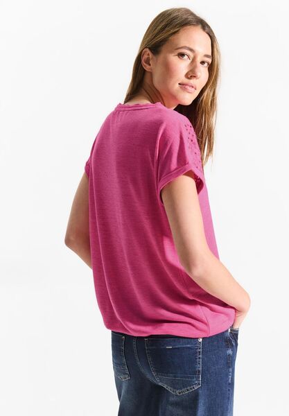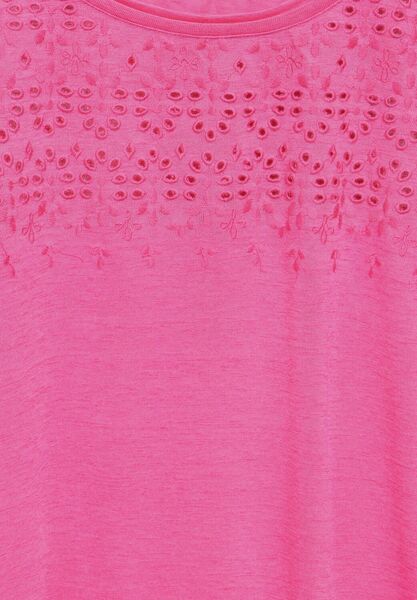 Das Sommer-T-Shirt von CECIL für Damen ist ein lässiges Kurzarmshirt mit einem praktischen Gummibund für eine bequeme Passform. Es zeichnet sich durch feminine Lochstickerei-Details aus, die dem Shirt eine charmante und verspielte Note verleihen. Hergestellt aus bequemer Jersey-Qualität bietet es ein angenehmes Tragegefühl und ist ideal für warme Sommertage geeignet. Kurzarmshirt Gummibund Feminine Lochstickerei Bequeme Jersey-Qualität Material: 55% Polyester, 45% Viskose
