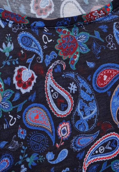 Paisely-Power! Das Langarmshirt von CECIL begeistert mit dem allover Print im angesagten Paisley-Design. An den Schultern wird es durch gesmokte Details verfeinert und bekommt so seinen einzigartigen Look. Das dekorative Tunnelzugband am Saum lässt sich durch eine Schleife verzieren. Mit dem soften Materialmix ist ein hoher Tragekomfort garantiert!\n\n\n Langarmshirt mit dekorativem Paisley-Print\n Mit Rundhalsausschnitt\n Tunnelzugbändchen im Gummizug-Saum\n Mit Smock-Detail an den Schultern\n Maße bei EU-Größe M ca.:\n Länge 65 cm, Brust 54 cm, Saumweite 56 cm\n Material: 50% Baumwolle, 50% Modal