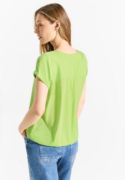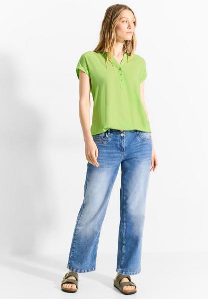 Die unifarbene Viskosebluse von CECIL für Damen ist ein ideales Sommerstück mit Kurzarm und einem geschlitzten Rundhalsausschnitt, der mit einer Knopfleiste verziert ist. Der Gummibund sorgt für eine bequeme Passform, während der gekrempelte Armsaum einen lässigen Touch verleiht. Aus weicher Viskose-Qualität bietet sie angenehmen Tragekomfort für warme Tage.