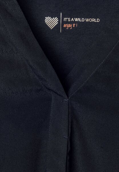 Schlichtes Tunika-Shirt! Besonders der lockere Schnitt mit dem Elastiksaum verleiht dem Shirt von CECIL diese lässige Ausstrahlung. Der geschlitzte Rundhalsausschnitt betont wunderbar feminin. Die sportlichen 3/4-Ärmel haben einen umgeschlagenen Saum und der softe Materialmix garantiert ein angenehmes Tragegefühl. Das Shirt im Tunika-Style lässt sich super vielseitig und einfach kombinieren.\n\n\n Shirt im Tunika-Style\n Geschlitzter Rundhalsausschnitt\n Elastiksaum\n 3/4 Ärmel mit umgeschlagenem Saum\n Unifarbe\n Maße bei EU-Größe M ca.:\n Länge 66 cm, Brust 53 cm, Saumweite 56 cm\n Material: Vorderseite: 100% Viskose, Rückseite. 50% Modal, 50% Baumwolle