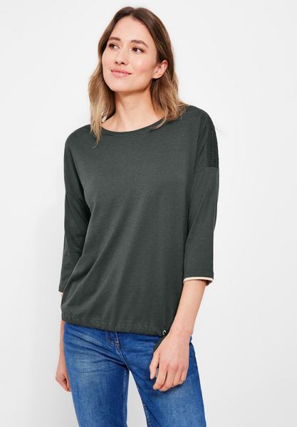 Basic mit Extra! Feminines, unifarbenes Damenshirt von CECIL mit Rundhalsausschnitt. Ein Must-have für jeden Tag mit 3/4 Ärmeln und Tunnelzugband im Saum. Für einen Extra-Hingucker sorgen die Smok Details auf den Schultern. ShirtUnifarbeSmok DetailsTunnelzugbandRundhalsausschnitt Maße bei EU-Größe M ca.: