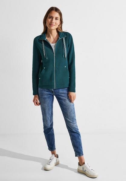 Embrace Casual Comfort! Die Damen Shirtjacke mit Stehkragen, Reißverschluss und Kängurutasche sowie gemustertem Tunnelzugband ist perfekt für entspannte Tage. Mit ihrer strukturierten Optik kann sie einfach und vielseitig kombiniert werden. Ein lässiger Look und ein neues Lieblingsteil!