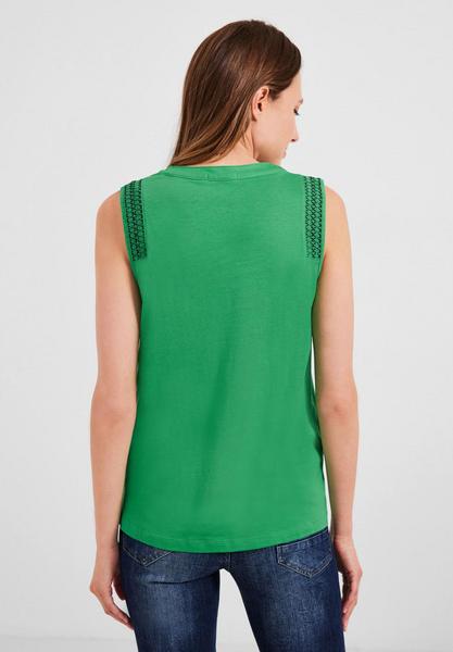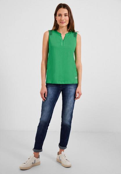 Detailverliebt! Das sommerliche Damentop von CECIL begeistert mit feinen Details. So finden sich auf den Schultern gesmockte Einsätze, die durch die Stickereien besonders ins Auge fallen. Ein geschlitzter Rundhalsausschnitt setzt das Dekolleté gekonnt in Szene. In Unifarbe lässt sich das Top vielseitig kombinieren und ist an heißen Tagen einfach ein Muss.