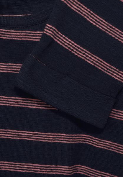 Happy Stripes! Das Damen Shirt von CECIL gefällt mit sportlichem Streifenmuster. Ärmel in 3/4-Länge unterstreichen die lässige Note des Shirts mit Rundhalsausschnitt. Dezente Details wie der Kragen aus Rippstrick, der abgerundete Saum und umgeschlagene Ärmelbündchen machen den Look komplett.