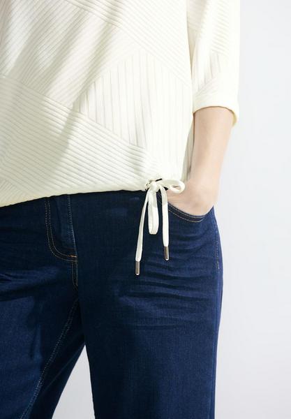 Das unifarbene Damenshirt von CECIL mit 3/4 Arm überzeugt mit einem Tunnelzug im Bund und einem Streifen-Struktur Mix. Dieses Damenshirt verfügt über einen bequemen Stoffmix und bietet vielseitige Kombinationsmöglichkeiten für deine Outfits. Mit seinem modernen Design ist es ein vielseitiges Kleidungsstück, das sich leicht in verschiedene Looks integrieren lässt. Shirt 3/4 Arm Tunnelzugband im Bund Unifarbe Struktur Mix Rundhalsausschnitt Material: 55% Viskose, 40% Polyester, 5% Elasthan